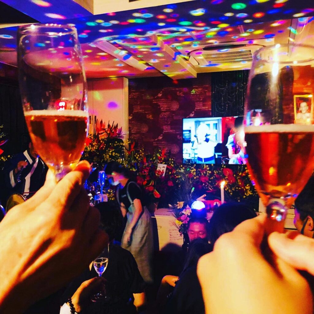 映画には、余命宣告を受けた入居者の“ぱっちん”こと合田貞さんを送り出す様子が記録されています。最期の時間をぱっちんらしく過ごせるようみんなで話し合い、大好きなお酒を楽しめるよう「キャバレーナイト」を企画したり、いよいよお別れが近づいたときはベッドの周りで音楽を奏で語り合ったり。お葬式では生前収録されたぱっちんの掛け声に合わせ、大勢の人が万歳三唱していました。